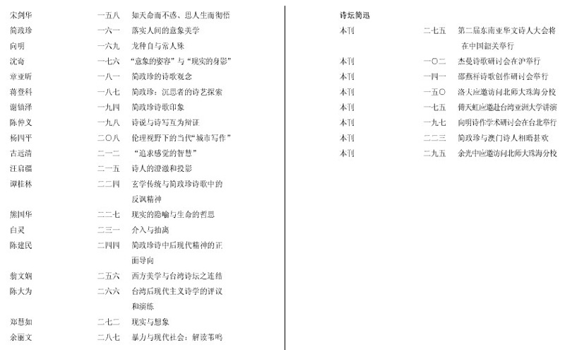 第47·48期卷头语 2007年3月9日至11日,在广东珠海举行了“两岸中生代诗学高层论坛暨简政珍诗歌作品研讨会”,会议由北师大珠海分校国际华文文学发展研究所、首都师大中国诗歌研究中心和当代诗学会联合主办,由西南大学中国新诗研究所、首都师大中国诗歌研究中心和当代诗学会联合主办,由西南大学中国新诗研究中心、台湾亚洲大学文理学院、暨南大学现代文学研究中心、珠海作家协会、韶关五月诗社等单位协办。与会代表来自两岩四地四十余所大学及科研机构,会上,学者和诗人们对“中生代”命名问题以及与“中生代”有关联的诗学问题进行了热烈的、深入的探讨,对简政珍的诗歌作品进行了学术研究和讨论。 代际划分是文学史叙述的必要课题。任何文学(诗歌)现象的出现都有它的代际基础。在这之前,对中国当代新诗的代际现象出过“中生代”、“新生代”、“第三代”、“中间代”等不同命名。这些命名的出现都是为了准确地划分不同世代的诗歌现象及认识这种诗歌现象与其它诗歌现象之间的区别与差异,为文学(诗歌)史的准确叙说提供依据。在上述各种命名中,“中生代”的命名似乎已获得多数诗人与学者的共识。它是指出生于20世纪四十年代后期到七十年代初期的中国大陆、台湾、香港、澳门的诗人群体。他们的年龄差距在1/4世纪之间。这些诗人是活跃在中国两岸四地当代诗坛的中坚力量。 孔子说:“名不正则言不顺,言不顺则事不成。”我们研讨“中生代”的命名,是为了探求历史言说的接近准确性,但无意获取话语霸权,也不谋求整齐划一,这原是不可能的。老子说:“名可名,非常名。”就是说,在“名”与“实”之间不可能划恒等号。我们的目的只是求取这种命名探讨的推进。 这次研讨会成果丰硕,高质量的论文就提交了四十多篇。本期集中推出一个专辑,既是为了促进当代诗学研究和新诗创作的交流发展,也是为了纪念中国新诗诞生90周年,同时,也是为了纪念本刊创办20周年。因篇幅关系,未能刊出的论文稿将陆续刊出。