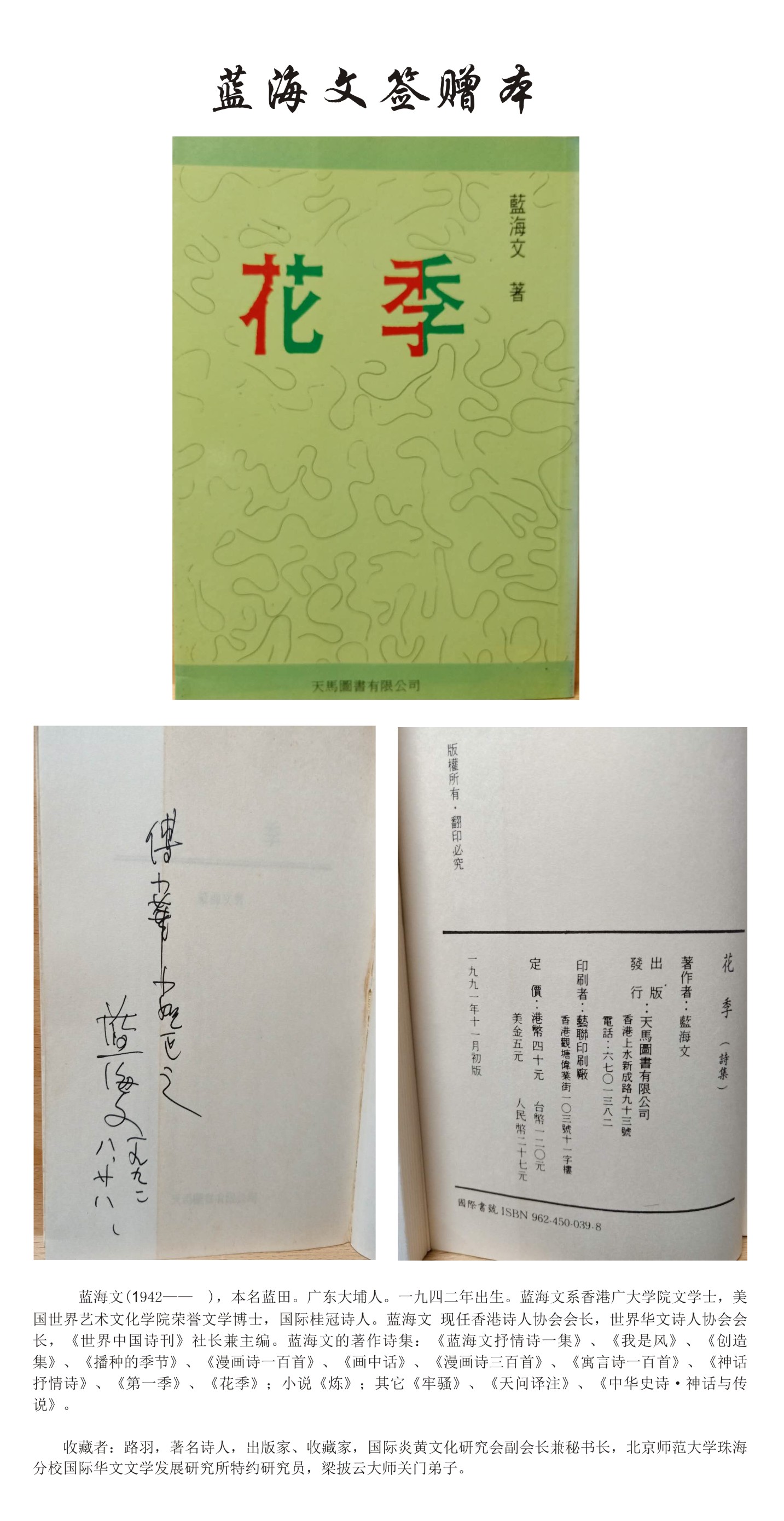 名人签赠本——蓝海文