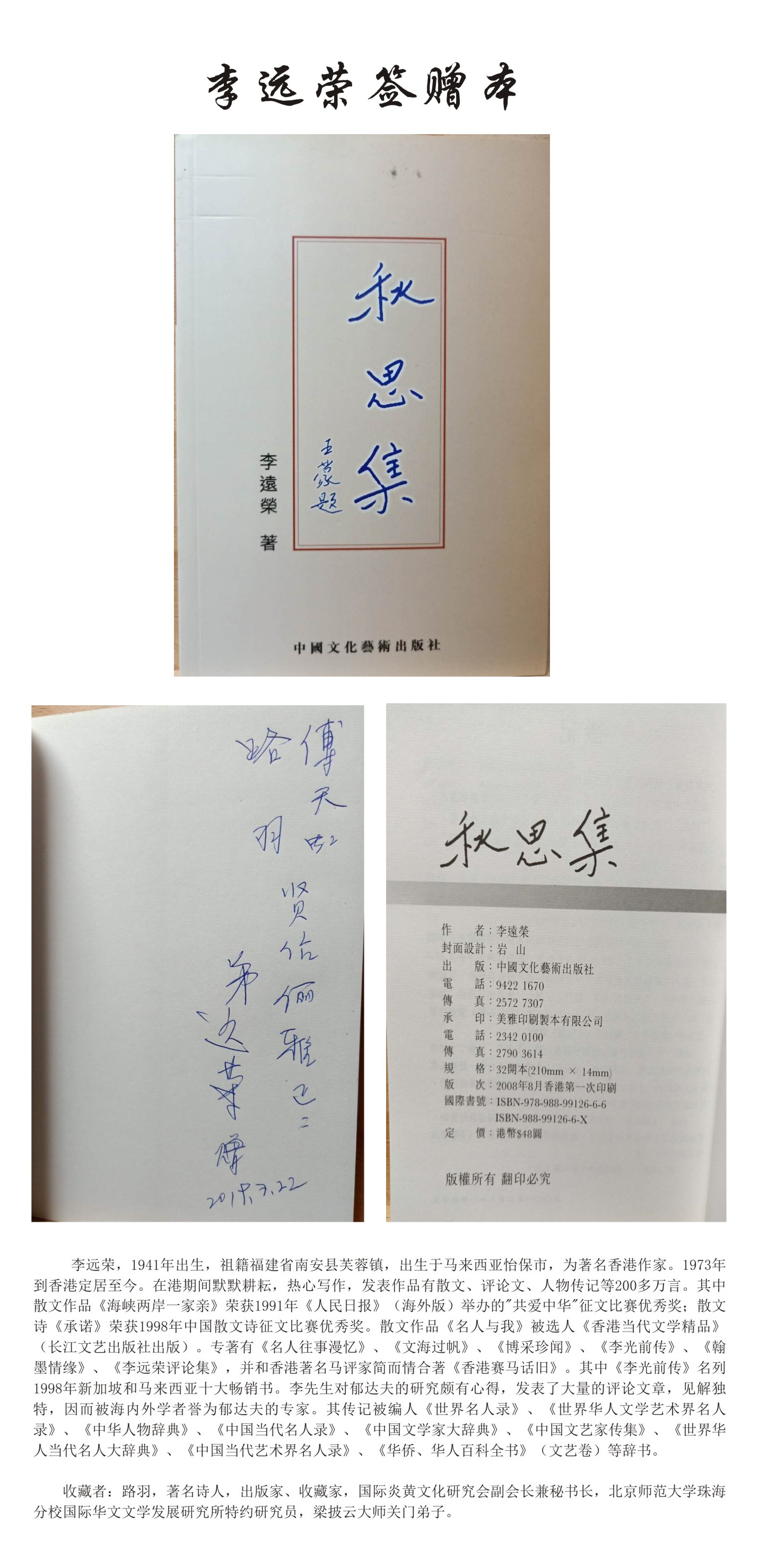 名人签赠本——李远荣
