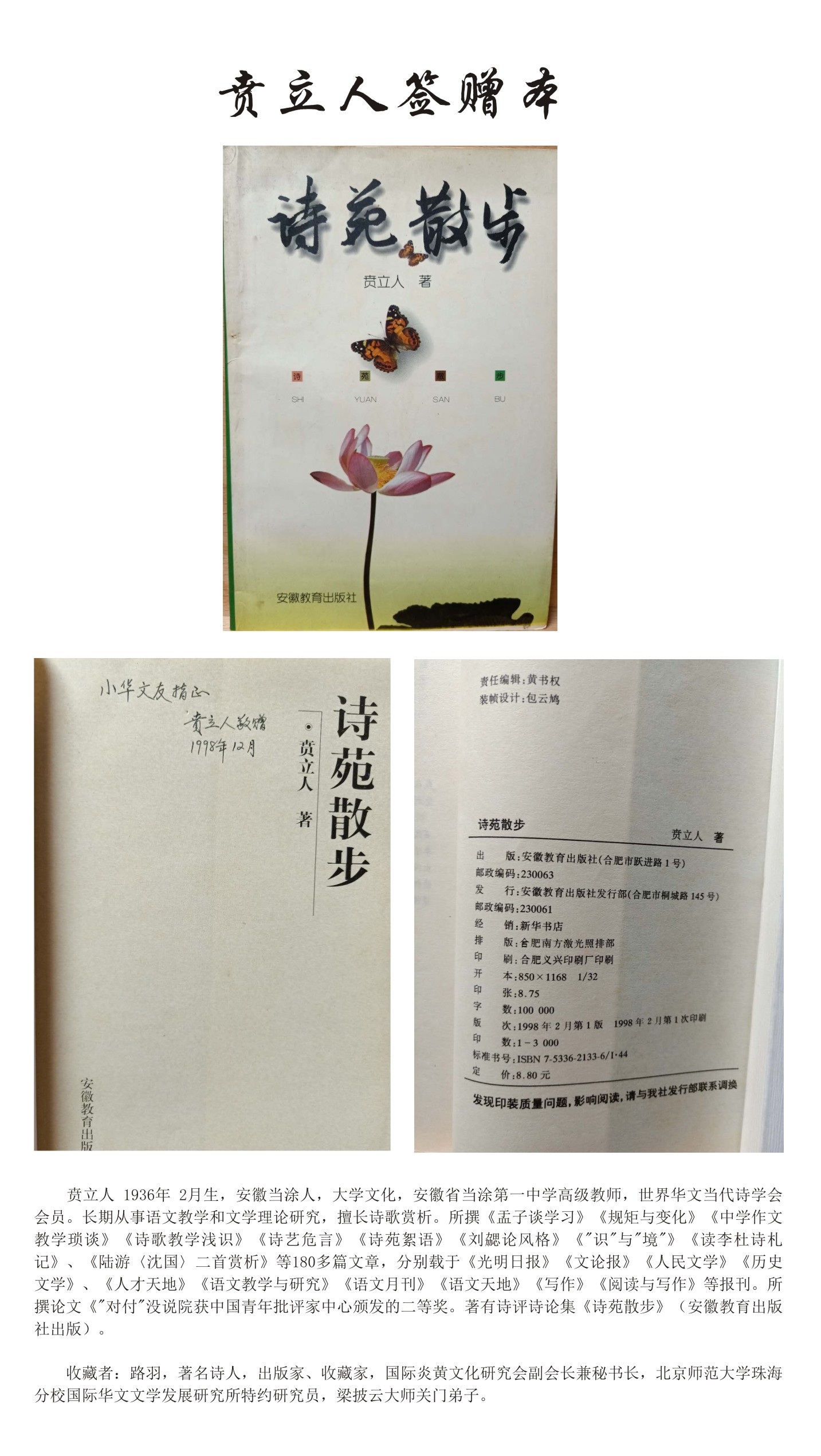 名人签赠本——贲立人