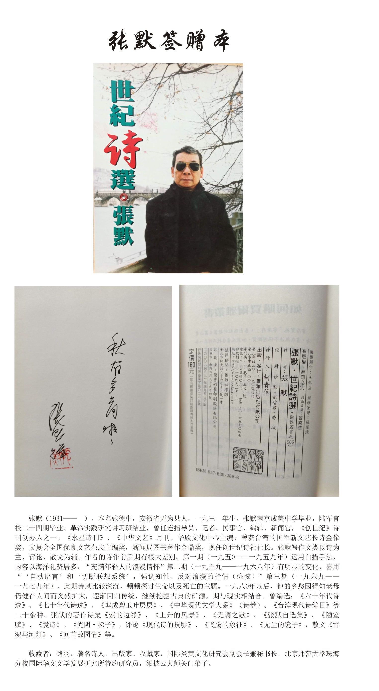 名人签赠本——张默