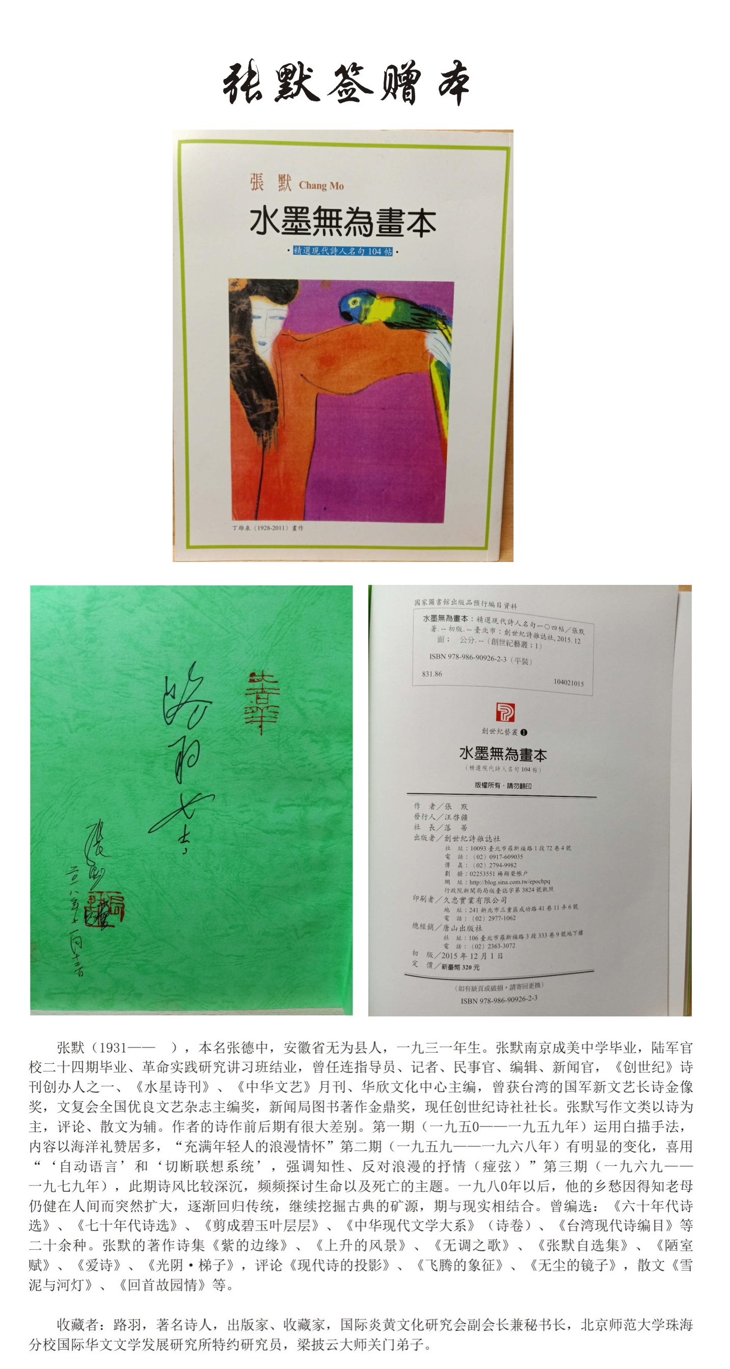• 名人签赠本——张默