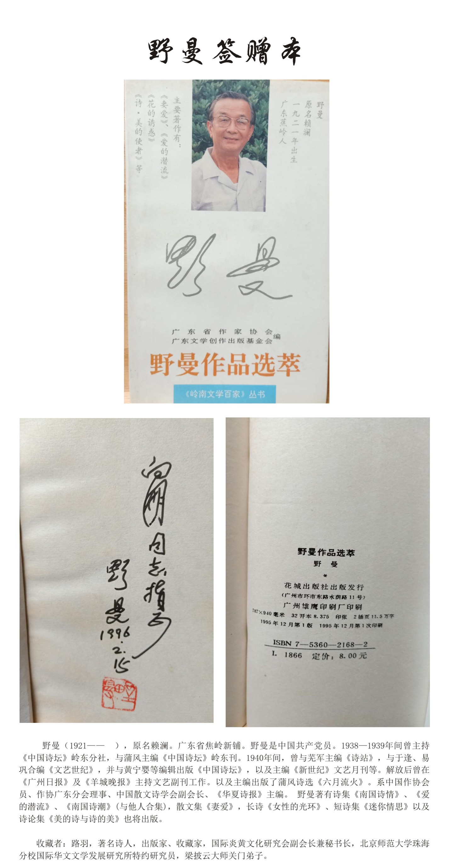 名人签赠本——野曼