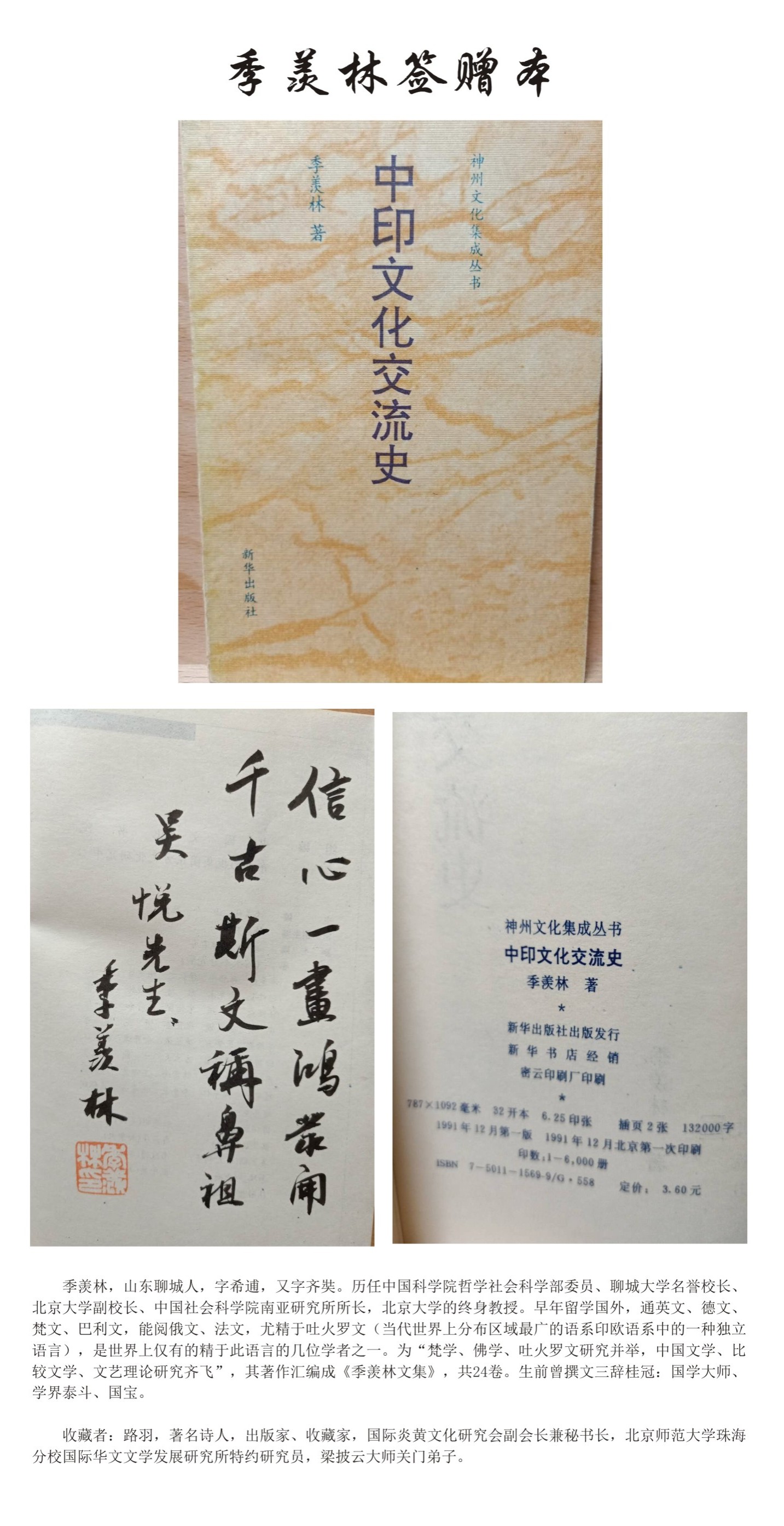 名人签赠本——季羡林