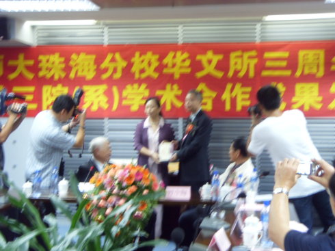 六、以使命为动力。华文所奋斗了三年,至今除了成果其他一无所有。所内同仁们,特别是傅天虹教授,全凭一种崇高的使命感,呕心沥血,择善固执,以拼命三郎的精神感动了上苍,赢得了两岸四地精英的支持,终于有了今天的成果。研究所为华文文学研究与普及所做的贡献,也获得了高度评价,珠海市社科联先后授予华文所“珠海市社会科学重点研究基地”、“珠海市社会科学普及先进示范基地”两个称号。