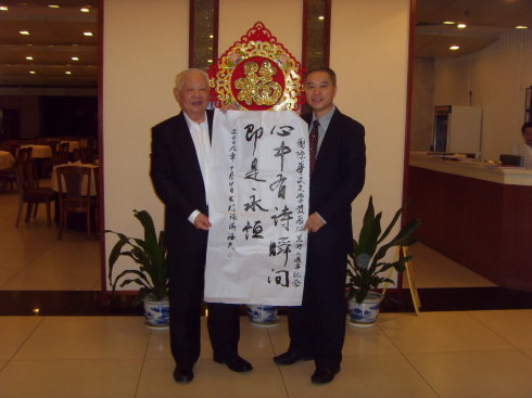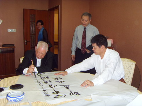 北师大珠海分校华文所成立三周年志庆暨合作成果发布会上著名诗人洛夫谈中生代诗歌并赋赠书法