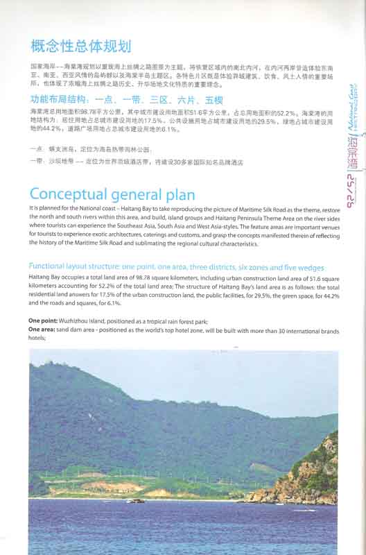 国家海岸——海棠湾规划以重现海上丝绸之路图景为主题,将恢复区域内的南北内河,在内河两岸营造体验东南亚、南亚、西亚风情的岛屿群以及海棠半岛主题区。各特色片区既是体验异域建筑、饮食、风土人情的重要场所,也体现了浓缩海上丝绸之路历史、升华场地文化特质的重要理念。