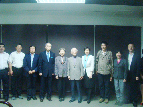 傅天虹夫妇、朱寿桐教授、陈惠兰女士与余光中先生、范我存女士合影