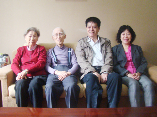傅天虹教授、路羽女士与余光中先生、范我存女士合影