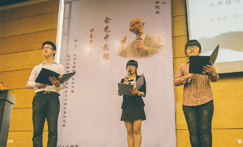 文学院橄榄枝朗诵社的学生们为余光中先生献上激情朗诵