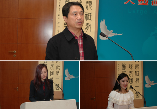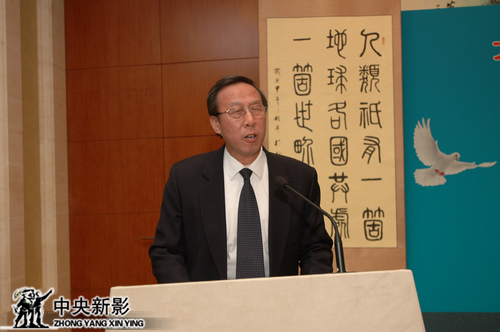 接着,著名书画家仝开健、郑起、喻大跃、卞启舜、王彦阳为嘉宾和外国使节赠送了书画作品。光明日报社原社长、党委书记苟天林宣布:仝开健先生书画艺术、“艺术与和平”名家书画展开幕!国家海洋局原副局长杨文鹤,总参工程兵学院原政委、少将孙之贵,中联部党群工作协调局局长尤建华,中央新影集团副总裁、总编辑郭本敏,香港成龙集团董事局主席陈远,著名书画家仝开健、知名京剧演员马则琪夫妇为画展揭幕。
