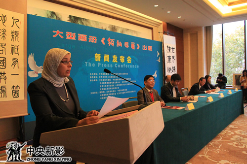 北京逸点灵犀科技有限公司总经理张敬绵、北京工艺美术出版社社长兼总编陈高潮、埃及驻华使馆新闻参赞胡达·扎德拉(HODA JADALLA)、世界华侨华人社团联合总会常务副会长孟昭澄分别致辞。新闻发言人、《海洋世界》杂志社原主编孙滨发布了新闻幕后的故事。大型画册《领袖风云》作者、中国海洋学会科普推广与咨询部主任仝开健介绍了创作情况。他说,这个金点子首先得益于中央新影集团的导演和制片人郑子的创意,经过自己几个月的艰苦创作最终完成的,感谢喻上将、李部长、高部长、高副台长、刘主席、贾老师和胡安·里波列斯等艺术家的关心支持,感谢张总、齐总和出版社领导的扶持,感谢我的夫人的悉心照顾。谢谢大家的厚爱。