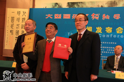 随后,中央新影书画院理事会副理事长、香港成龙集团董事局主席陈远,中央新影书画院执行副院长、中央新影集团技术中心主任马德利向中央新影书画院副院长仝开健先生颁发聘书。而中央新影书画院是中央新影集团旗下的专业创作和研究书画艺术的组织,是一家有着独特风格和艺术求索的书画院,有着自己的主旨和理念,致力于繁荣中国电影电视界的影视艺术书画事业,致力于发展中国书画产业。此次,经中央新影书画院研究,聘请仝开健为副院长,就是团结一批在书画艺术方面有创造力、有创新意识和创优品质的书画艺术家。