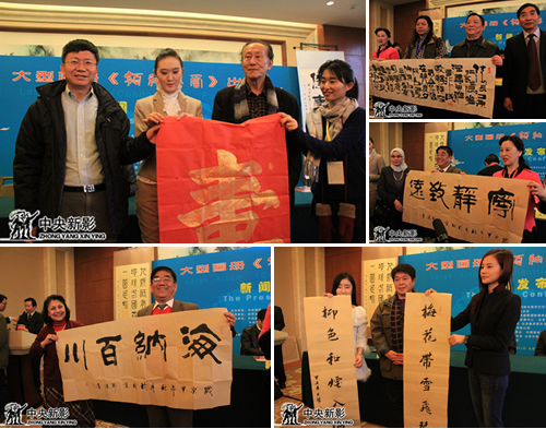 参加新闻发布会的领导及嘉宾有:光明日报社原社长、党委书记苟天林,国家海洋局原副局长杨文鹤,总参工程兵学院原政委、少将孙之贵,中联部党群工作协调局局长尤建华,人力资源部信息中心主任宋庆兰、国家海洋局海域管理司司长潘新春、中国绿色城市研究中心主任桂振华、中央警卫局原参谋陈久长、中铁六局党委工作部部长陈民强、香港成龙集团董事局主席陈远和主办单位、承办单位和指导单位的负责同志:世界华侨华人社会联合总会常务副会长孟昭澄,国家海洋局工会主席李永昌,中国海洋报社社长赵晓涛,中国海洋出版社原党委书记张崇范,国家海洋局老干部局局长高增田,北京工艺美术出版社社长陈高潮,北京逸点灵犀科技有限公司总经理张敬绵,北京郑和与海洋文化研究会副理事长霍玲、孙治国,德贤思齐文化传媒有限公司董事长齐永喜,中央新影集团技术中心主任、中央新影书画院执行副院长马德利,《中国社会报》社副社长秦艳,《中国海洋报》社社长赵晓涛,《中国妇女报》社社长助理邱岚,《中国政策》主编、新华社资深记者魏光朗,北京市文联秘书长贾忠华,北京市西城区文联党组书记汪邦宏,北京传统书画艺术研究会常务副会长兼秘书长刘欣茹,中海传媒总经理曹彩云,马鞍山市驻京办事处主任雍成斌,大型画册《领袖风云》作者仝开健和知名京剧演员马则琪;外交使节有:特立尼达多巴哥大使钱德拉达思·辛格大使夫人,印度尼西亚驻华文化参赞孙浩(Santo Darmosumarto),埃及驻华使馆新闻参赞胡达·扎德拉(HODA JADALLA),中东通讯社记者兰达·阿勒旺(RANDA ELWAN),埃及驻华使馆新闻处秘书刘晓丹(LIU XIAODAN),尼泊尔驻华代办拉姆(RAM PRASD SUBEDI),尼泊尔驻华文化专员库玛(KUMAR RAI),澳大利亚教育专员艾迪(EDDIE WAZEN),韩国民和协中国协议会议长张兴奭(JANG HEUNG SUK),联合国工业发展组织专员李友仁(YOUREN LI)等;人民日报、新华社、中央电视台等首都30余家新闻媒体的记者,国内文化艺术界、书画界、外交界、部分国家的驻华使馆文化参赞、官员共计300余人。