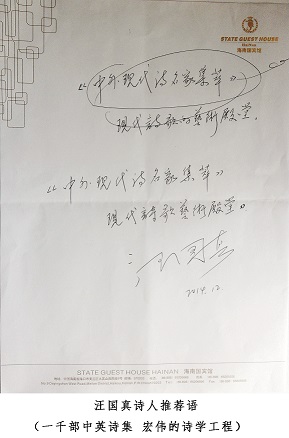 在2013亚太经合组织(APEC)工商领导人峰会上,习近平主席引用了汪国真的诗句:“没有比人更高的山,没有比脚更长的路”,对于习主席会背下他的诗,汪国真表示非常激动,连连感叹“习主席能背下我的诗词,我觉得挺欣慰的。”