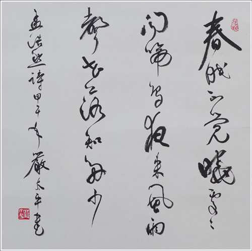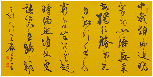 严太平先生对书法有着深刻的见解,用功亦勤,尤以行、草书见长。他的书法作品生龙活虎,抑扬顿挫富有变化。透露出既有传统书法中的“古意”,又不拘泥于古;既吸收了当代艺术界的新鲜气息,又不执意过火。这种对法度恰如其分的把握,离不开他常年对书法的研究与对人生的感悟,同时将这些融汇到他的作品中,不断创作出美的境界来,为后人所标榜研习。