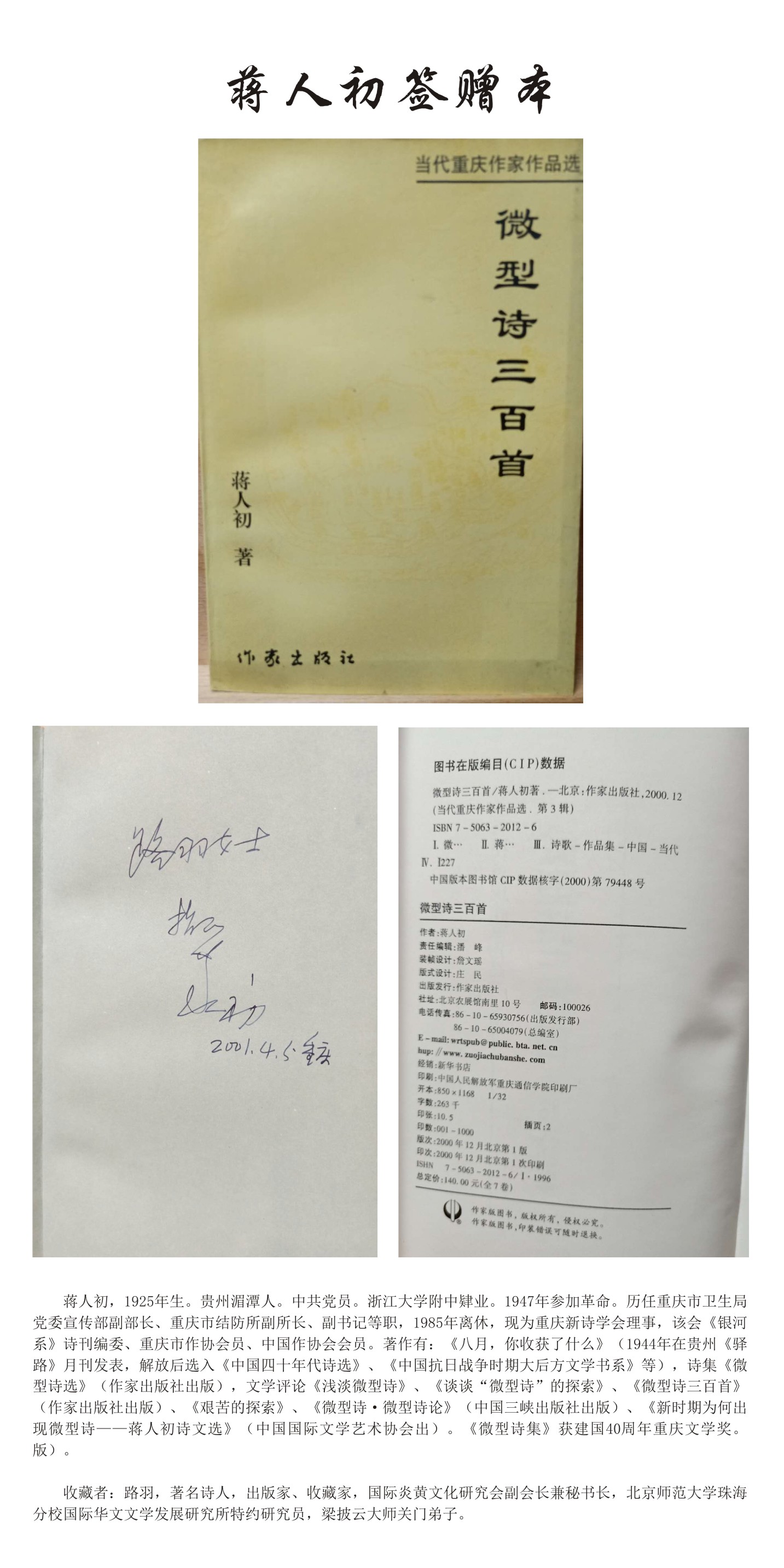 名人签赠本——蒋人初
