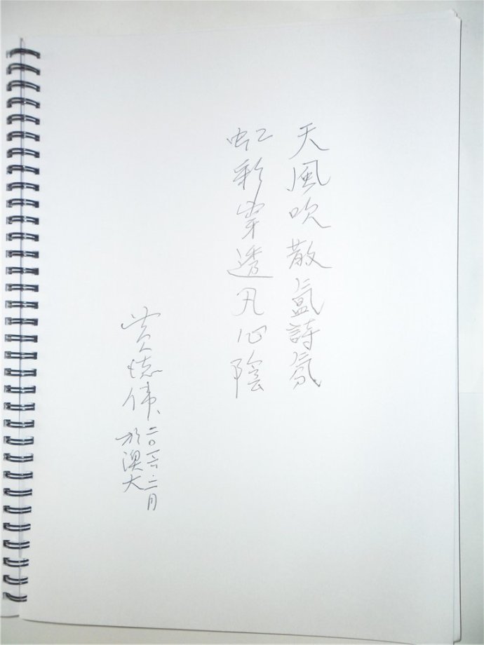 谢谢德伟兄为傅天虹题写的墨宝。早年台湾羊令野曾题赠我一幅对联,也是以天虹二字缀头:天垂大野阔,虹贯远空晴。