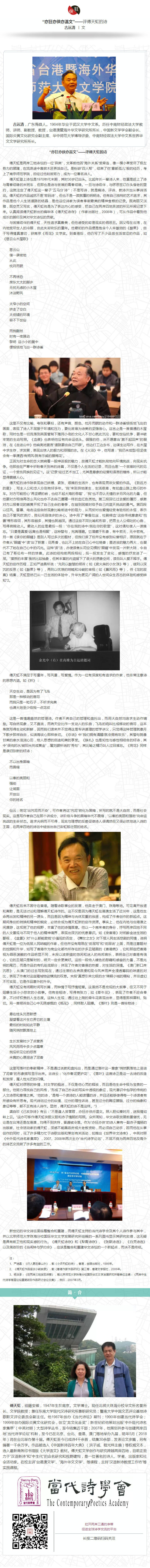 中国大陆“中生代”创作的 “汉语新诗”的历史文化内涵 ——以傅天虹诗歌为中心的讨论……王晓平