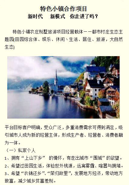 特色小镇合作项目——新时代 新模式 你走进了吗?