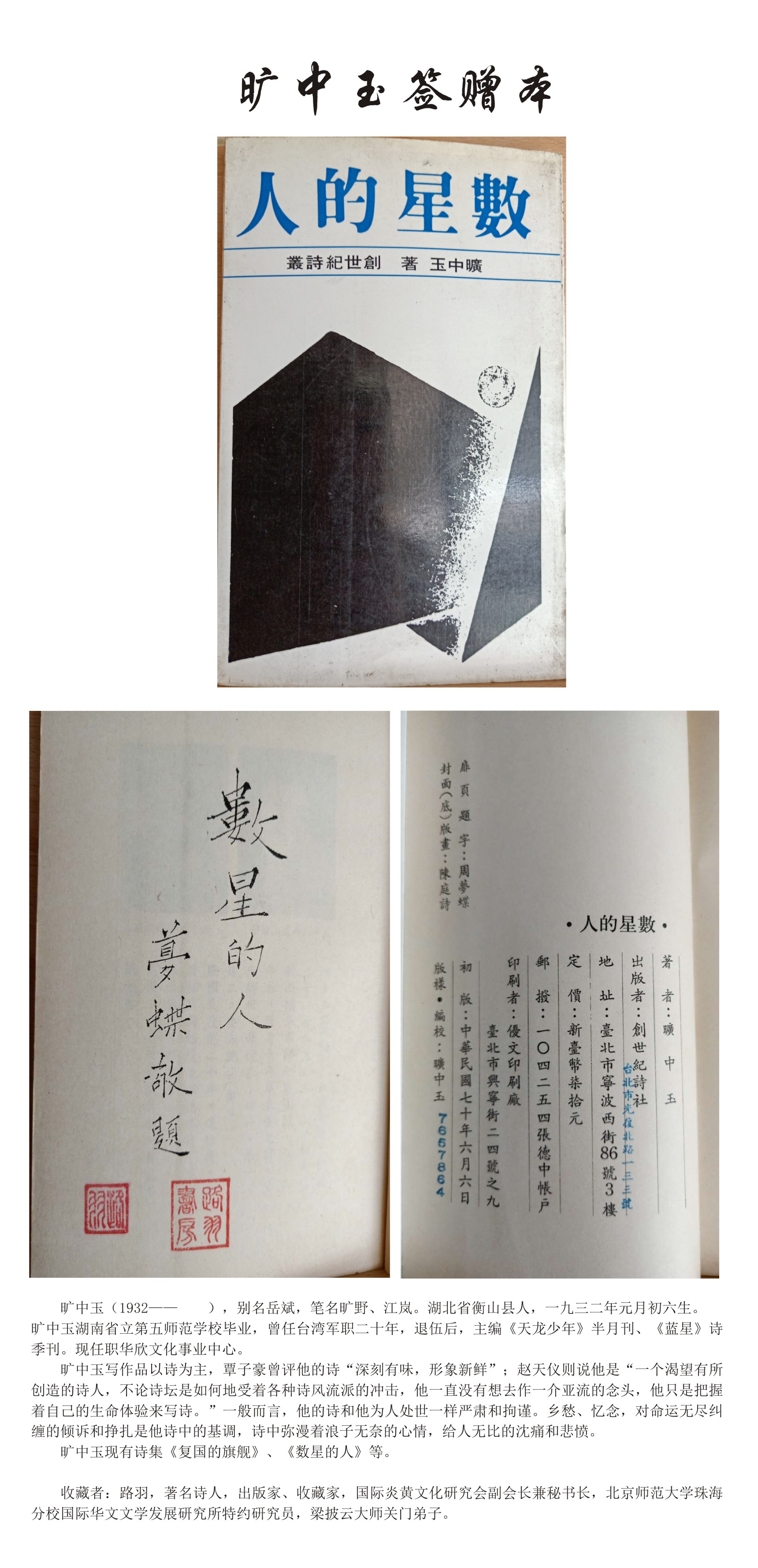 名人签赠本——旷中玉