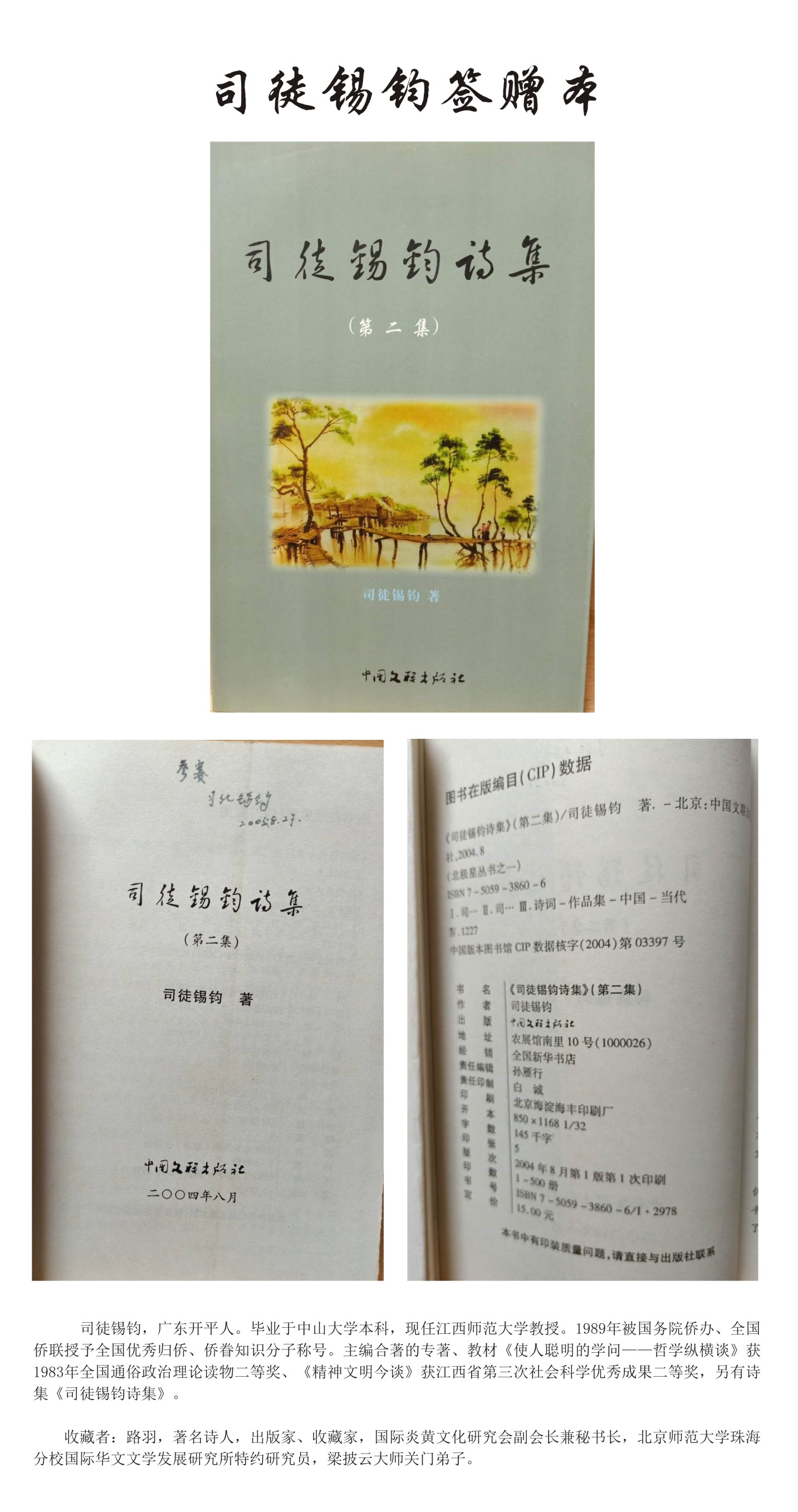 名人签名书——司徒锡钧
