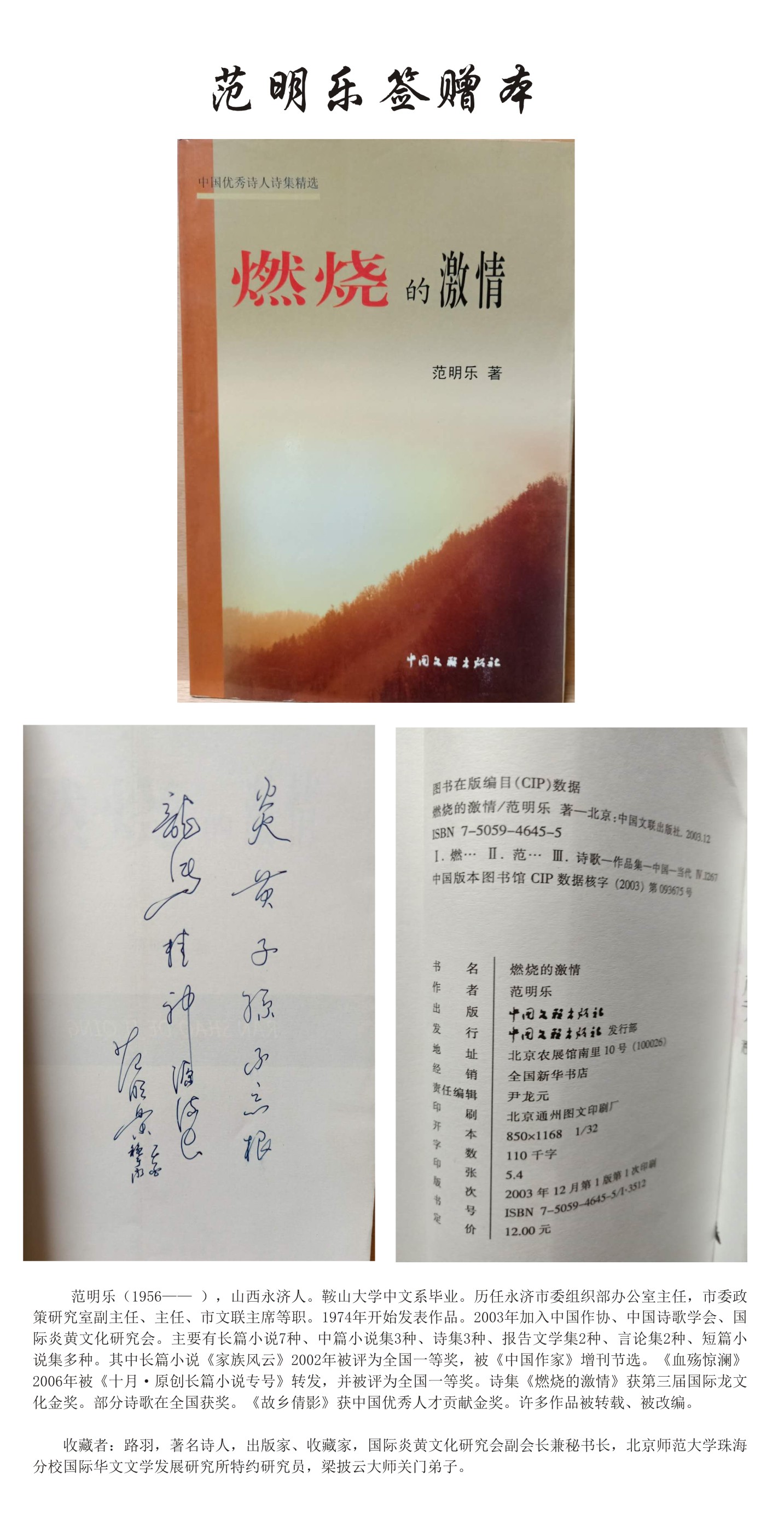 名人签名书——范明乐